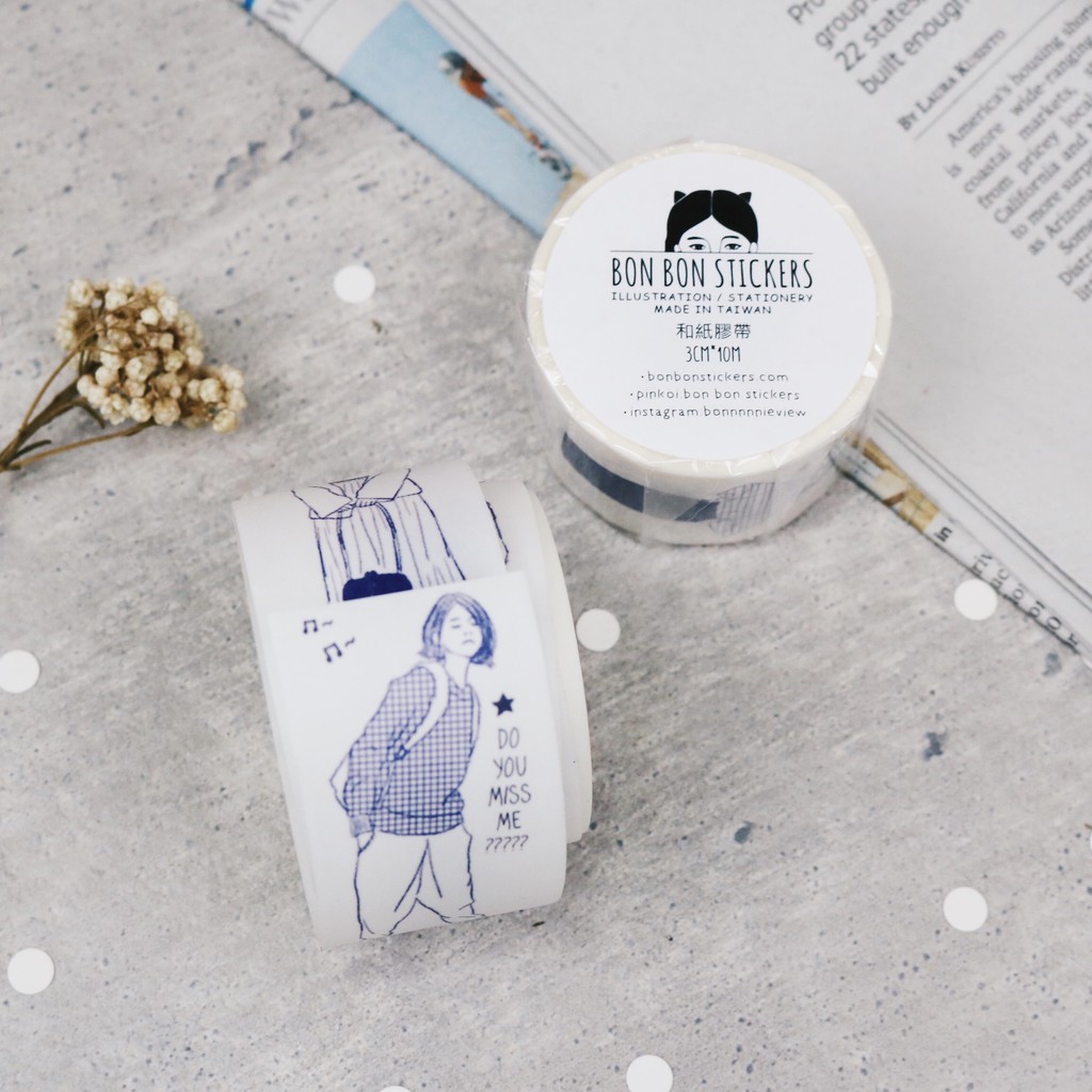 單色女孩 自帶離型紙 紙膠帶 - 藍